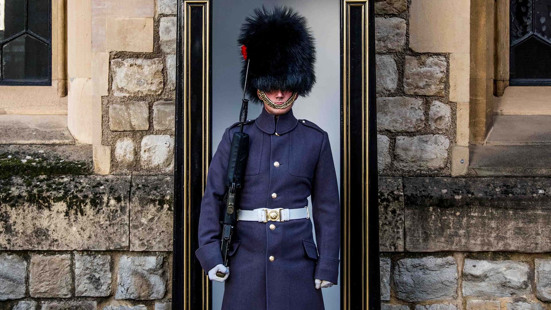 The Guardsmen are all actual members of the British Army infantry division, meaning they train for regular duties just like any other soldier!